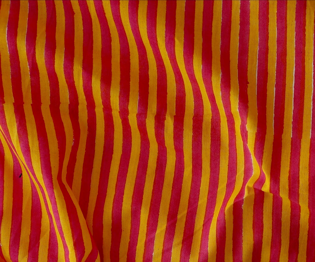 ブロックプリントと呼ばれるインド の伝統的な技法でプリントされた生地。木版で版画のように色を重ねていきます。時には10色以上重ねられることも!それゆえに木版の継ぎ目が見えたり、色むらがあったりしますが、それが一般的なスクリーンプリントにはない、なんとも言えない立体感を生み出しています。