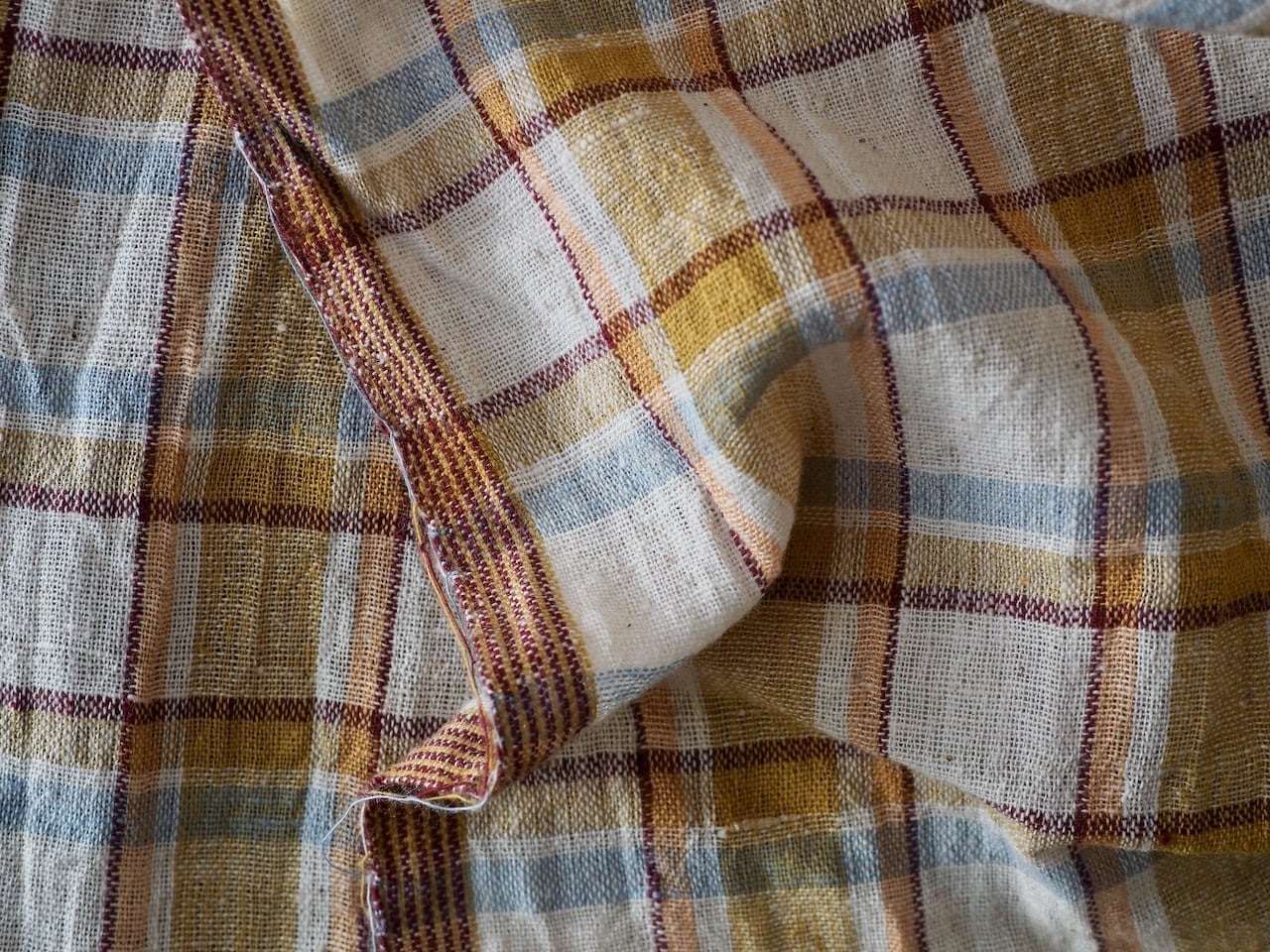 手紡ぎ手織りの布のため、織り傷、織りむらなどございます。