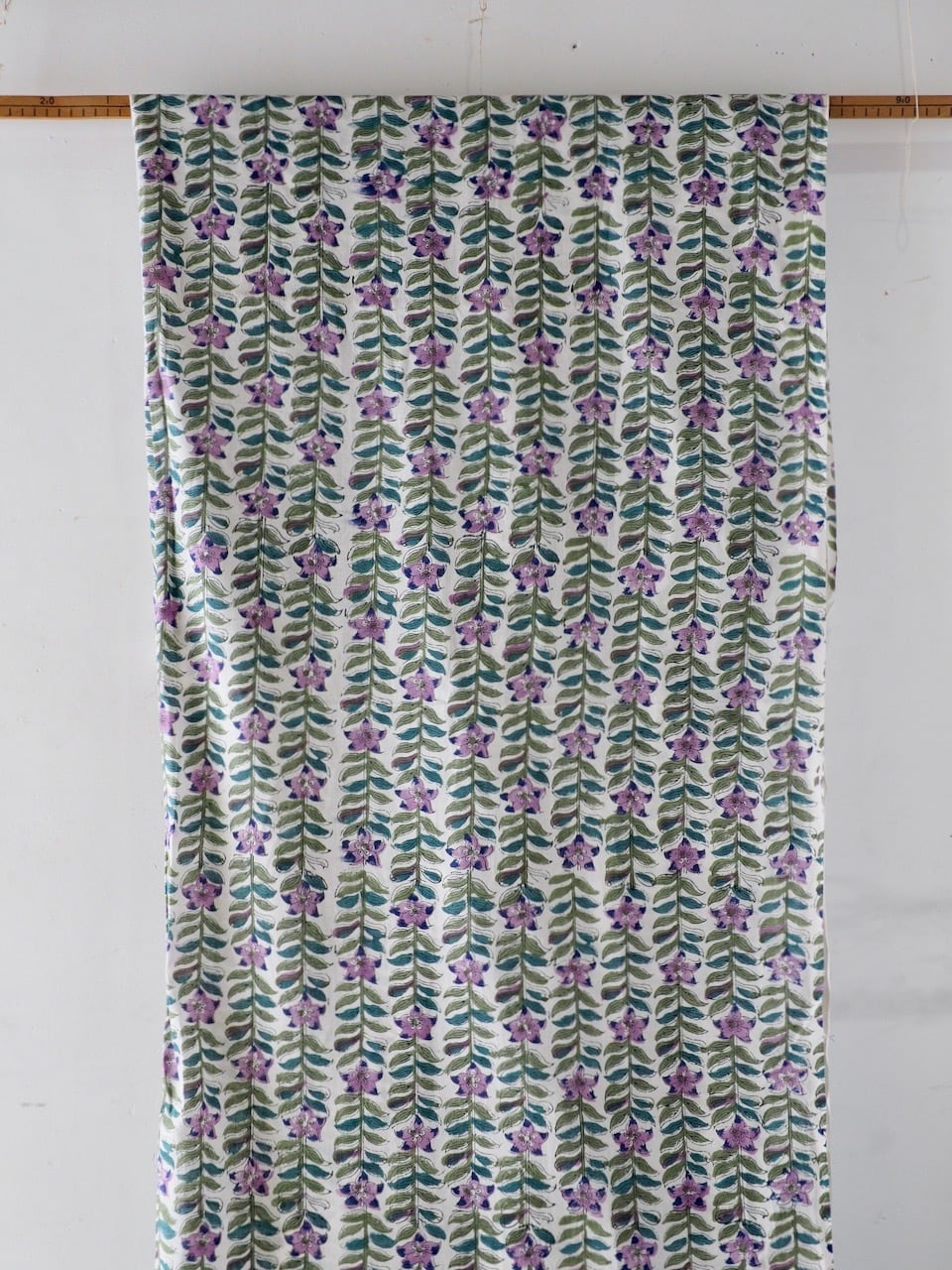 ブロックプリントと呼ばれるインド の伝統的な技法でプリントされた生地。木版で版画のように色を重ねていきます。時には10色以上重ねられることも!それゆえに木版の継ぎ目が見えたり、色むらがあったりしますが、それが一般的なスクリーンプリントにはない、なんとも言えない立体感を生み出しています。