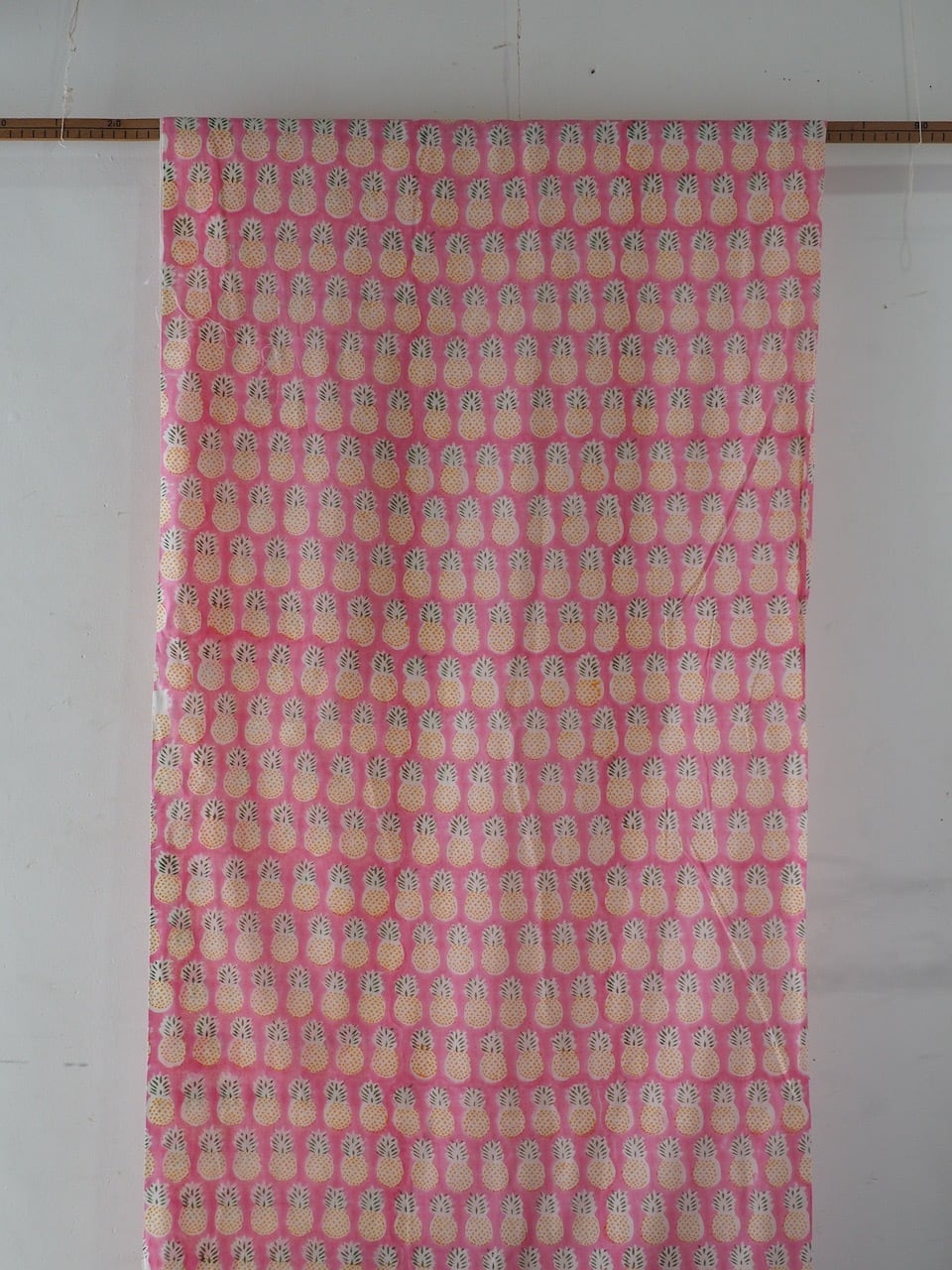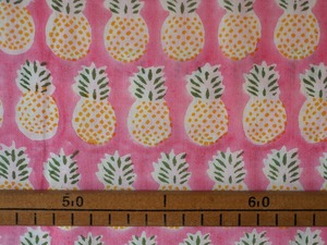 ブロックプリントと呼ばれるインド の伝統的な技法でプリントされた生地。木版で版画のように色を重ねていきます。時には10色以上重ねられることも!それゆえに木版の継ぎ目が見えたり、色むらがあったりしますが、それが一般的なスクリーンプリントにはない、なんとも言えない立体感を生み出しています。