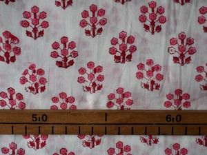 ブロックプリントと呼ばれるインド の伝統的な技法でプリントされた生地。木版で版画のように色を重ねていきます。時には10色以上重ねられることも!それゆえに木版の継ぎ目が見えたり、色むらがあったりしますが、それが一般的なスクリーンプリントにはない、なんとも言えない立体感を生み出しています。