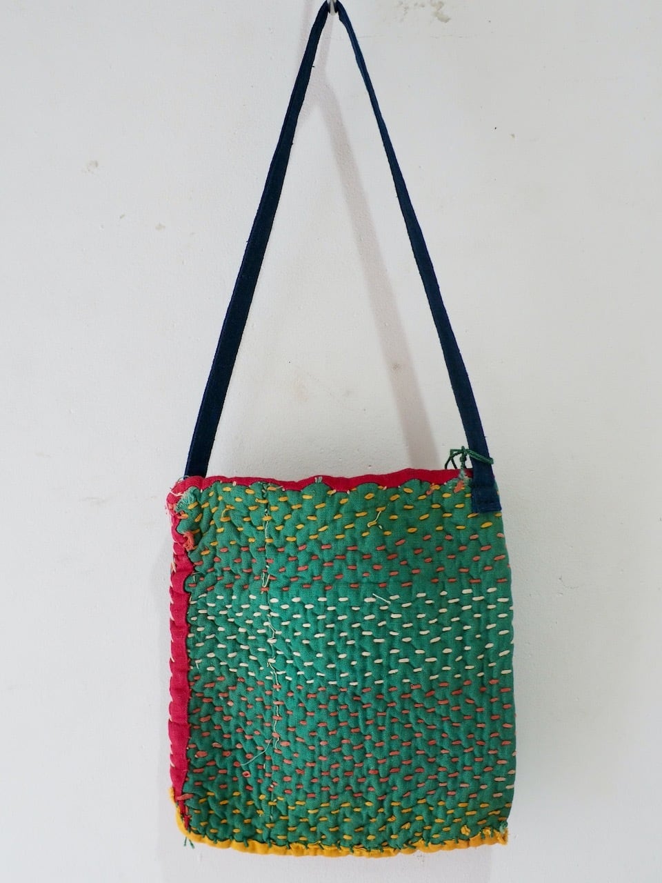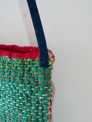 カッチ地方の古い布袋に持ち手をつけてバッグにしました。