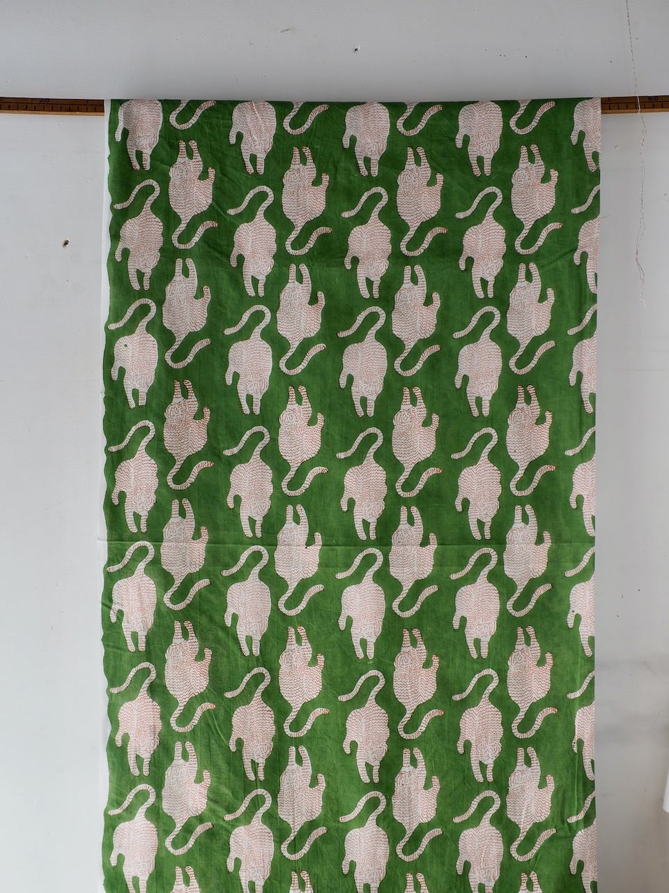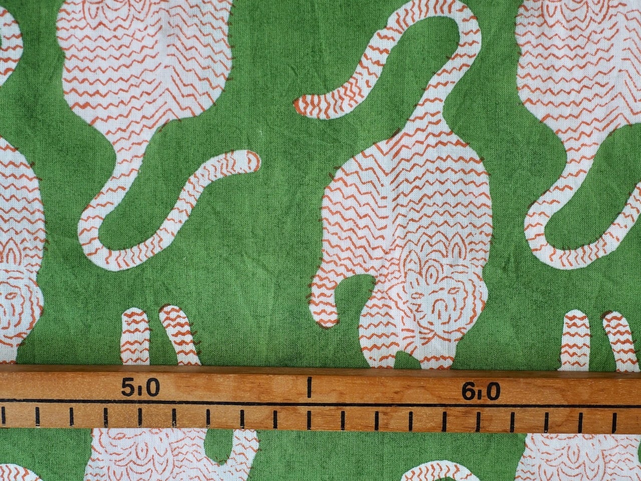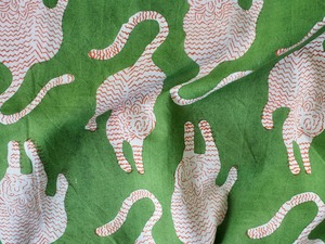 ブロックプリントと呼ばれるインド の伝統的な技法でプリントされた生地。木版で版画のように色を重ねていきます。時には10色以上重ねられることも!それゆえに木版の継ぎ目が見えたり、色むらがあったりしますが、それが一般的なスクリーンプリントにはない、なんとも言えない立体感を生み出しています。