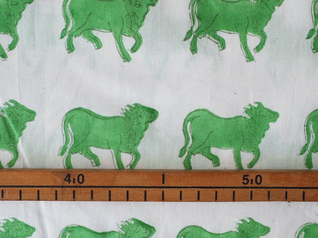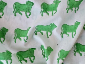 ブロックプリントと呼ばれるインド の伝統的な技法でプリントされた生地。木版で版画のように色を重ねていきます。時には10色以上重ねられることも!それゆえに木版の継ぎ目が見えたり、色むらがあったりしますが、それが一般的なスクリーンプリントにはない、なんとも言えない立体感を生み出しています。