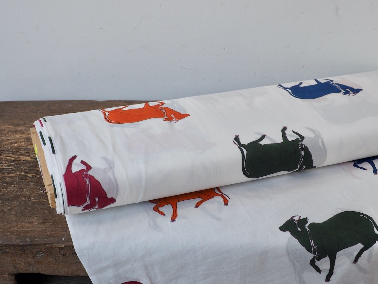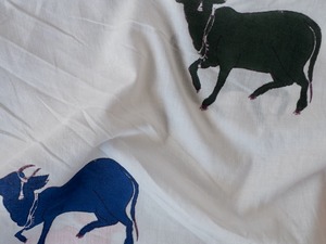 block print fabric d30 大きい牛 カラフル