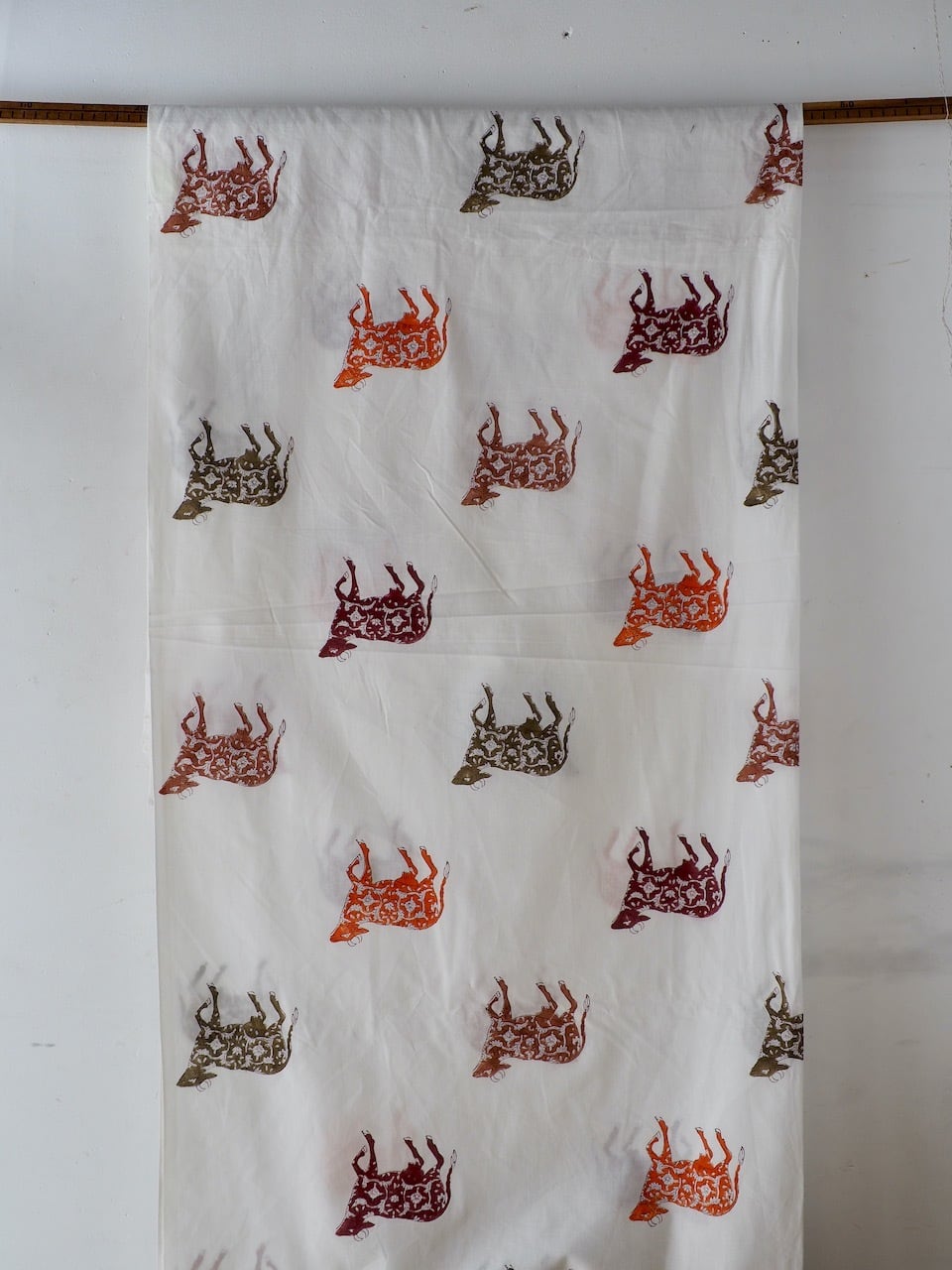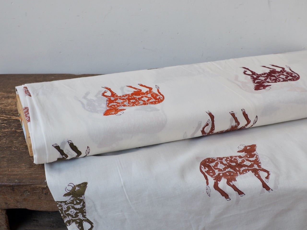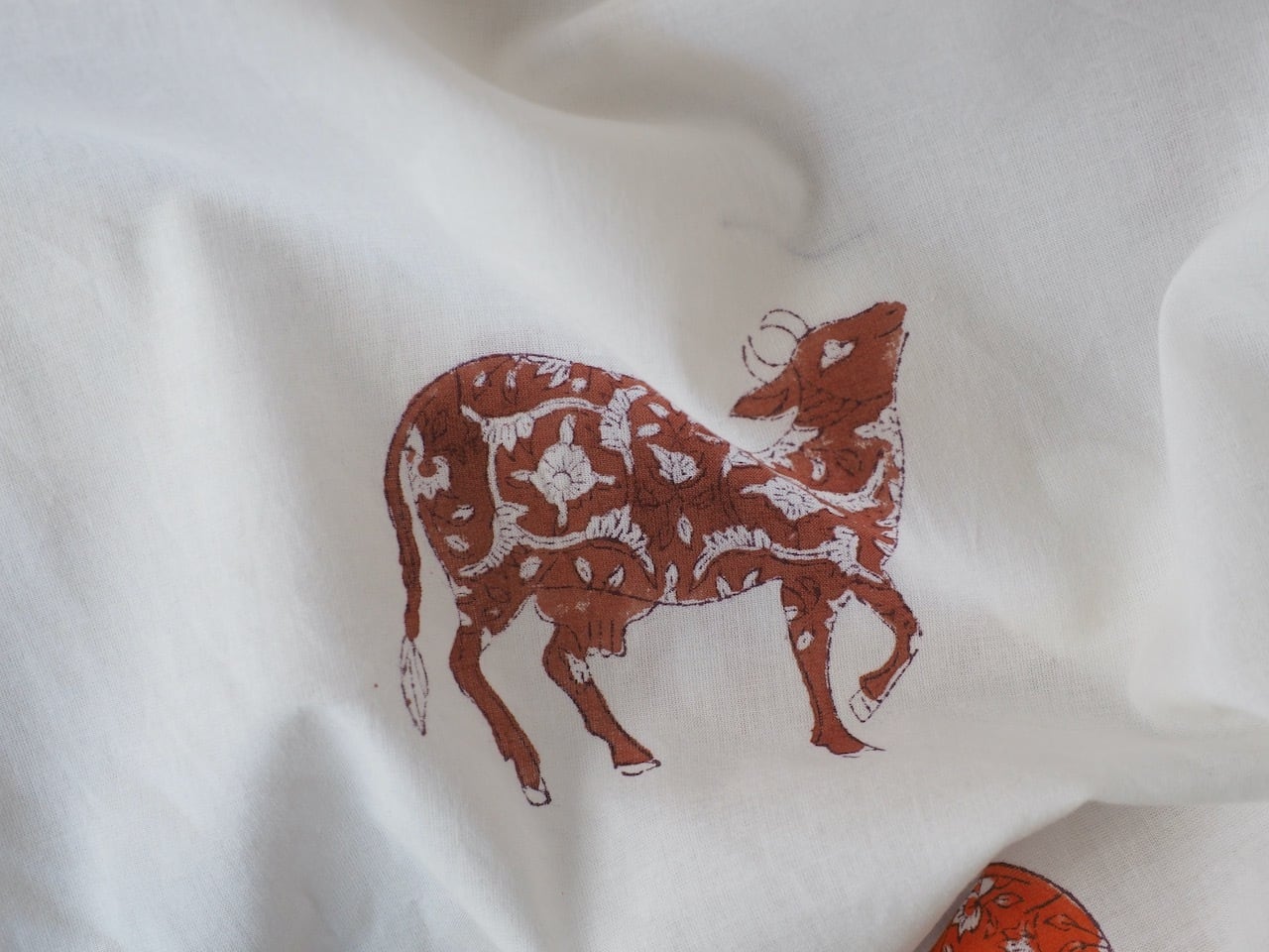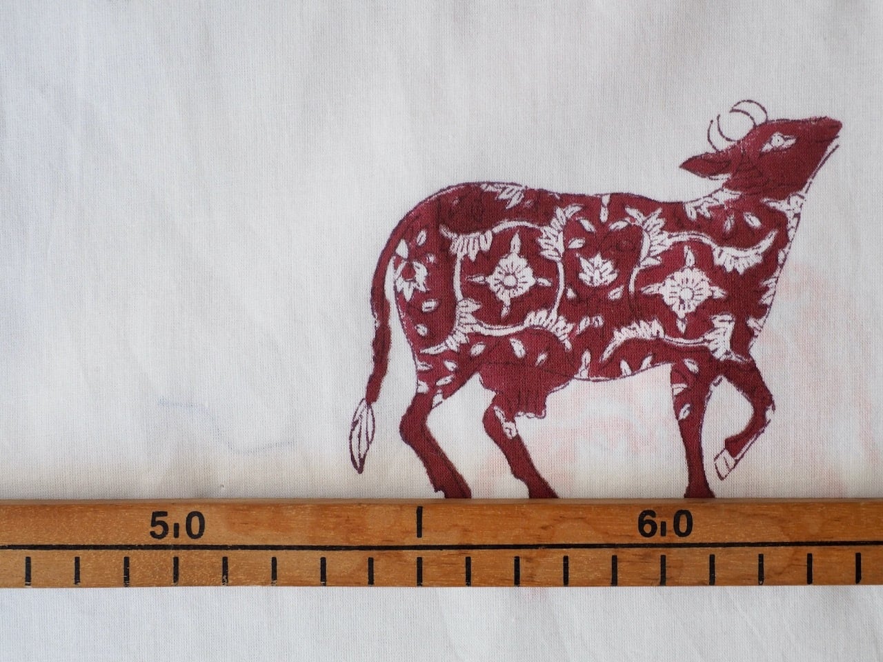 block print fabric d31 大きい牛 花柄