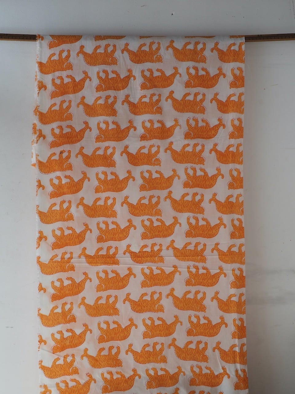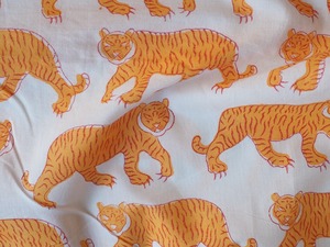ブロックプリントと呼ばれるインド の伝統的な技法でプリントされた生地。木版で版画のように色を重ねていきます。時には10色以上重ねられることも!それゆえに木版の継ぎ目が見えたり、色むらがあったりしますが、それが一般的なスクリーンプリントにはない、なんとも言えない立体感を生み出しています。