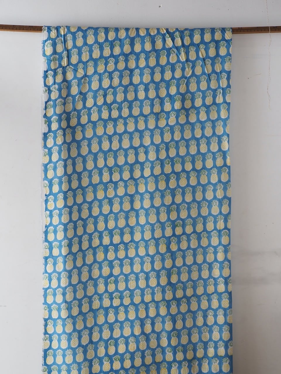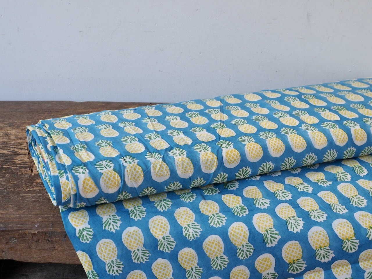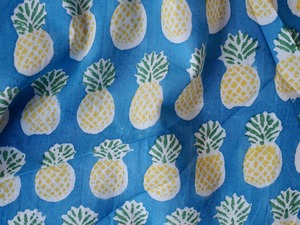 ブロックプリントと呼ばれるインド の伝統的な技法でプリントされた生地。木版で版画のように色を重ねていきます。時には10色以上重ねられることも!それゆえに木版の継ぎ目が見えたり、色むらがあったりしますが、それが一般的なスクリーンプリントにはない、なんとも言えない立体感を生み出しています。