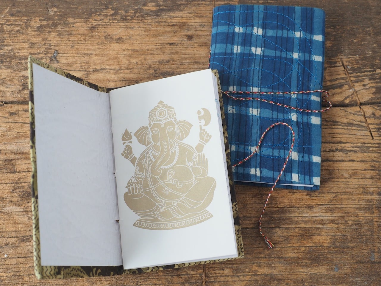 一枚目にガネーシャが書かれている布張りのノート。