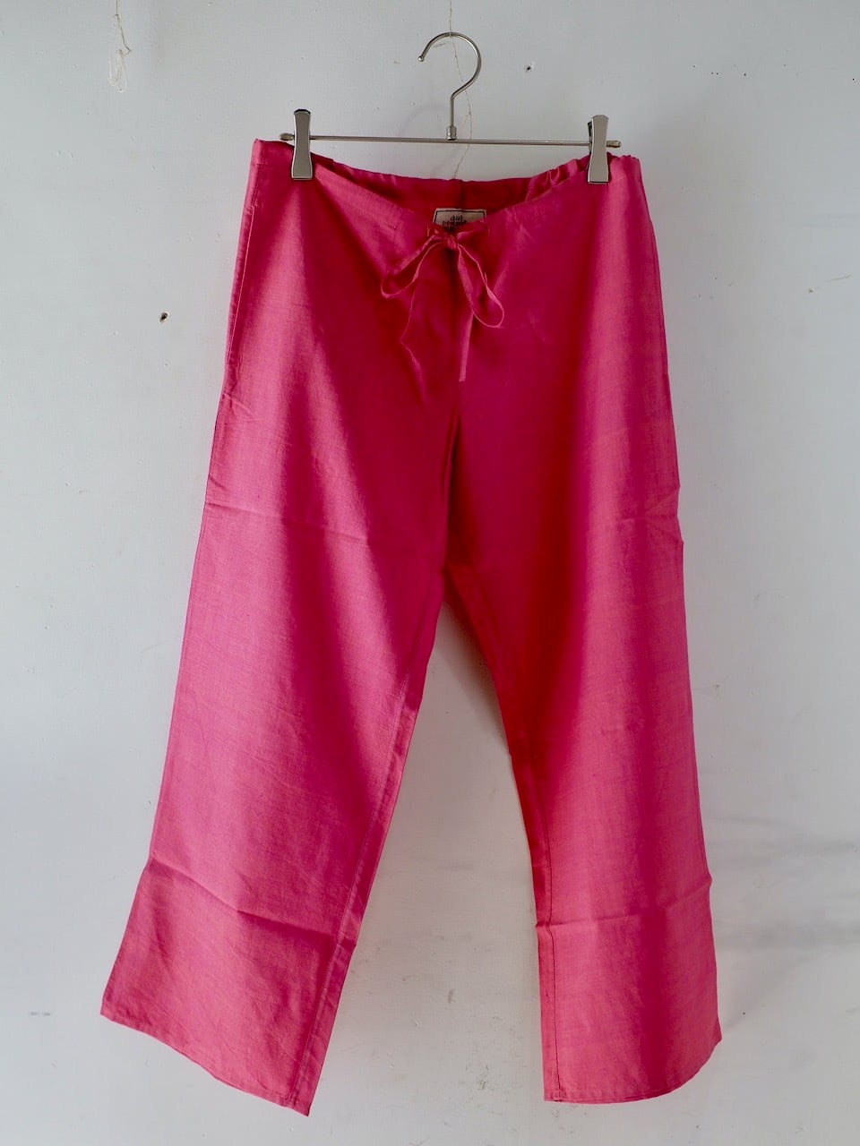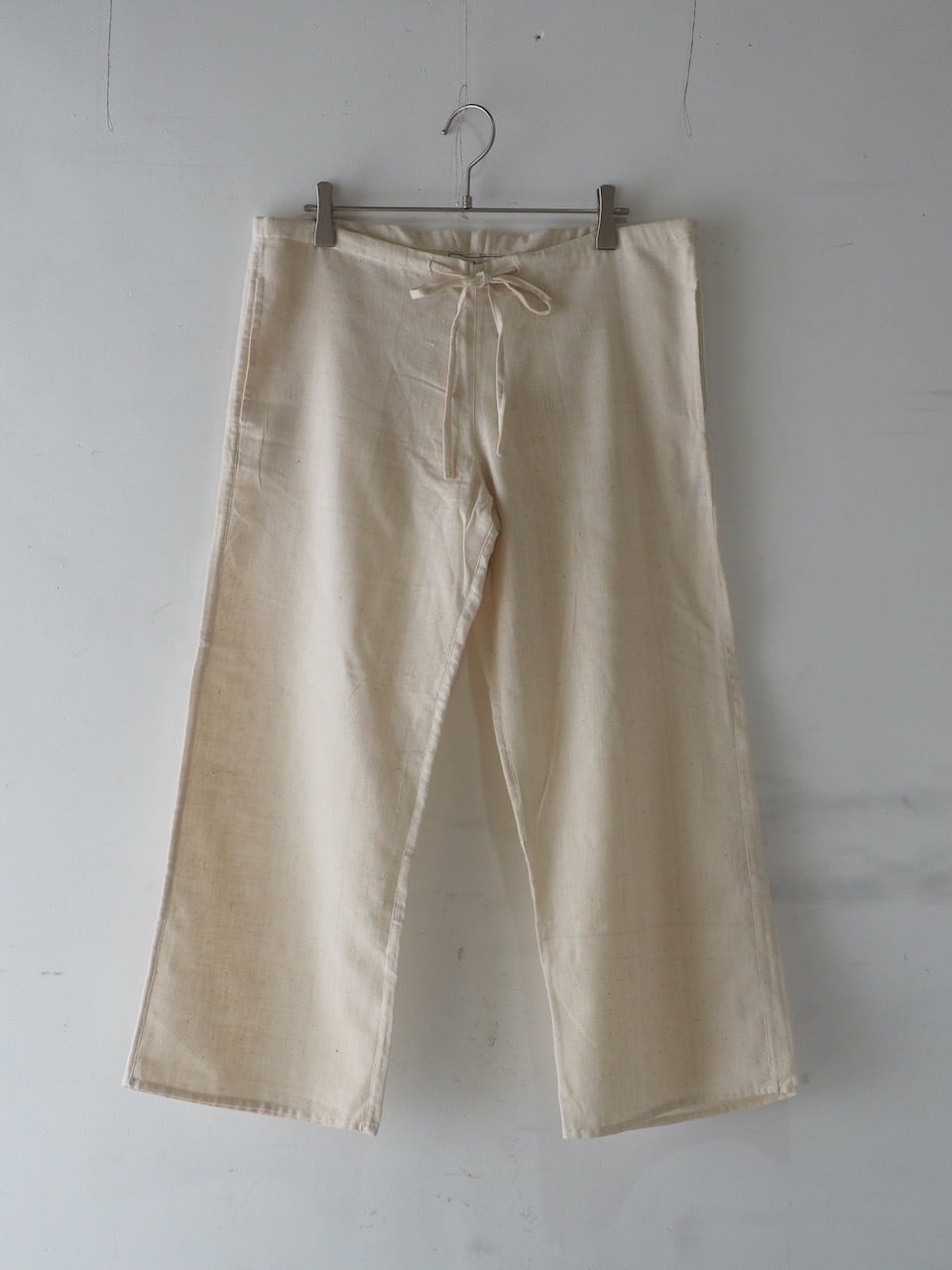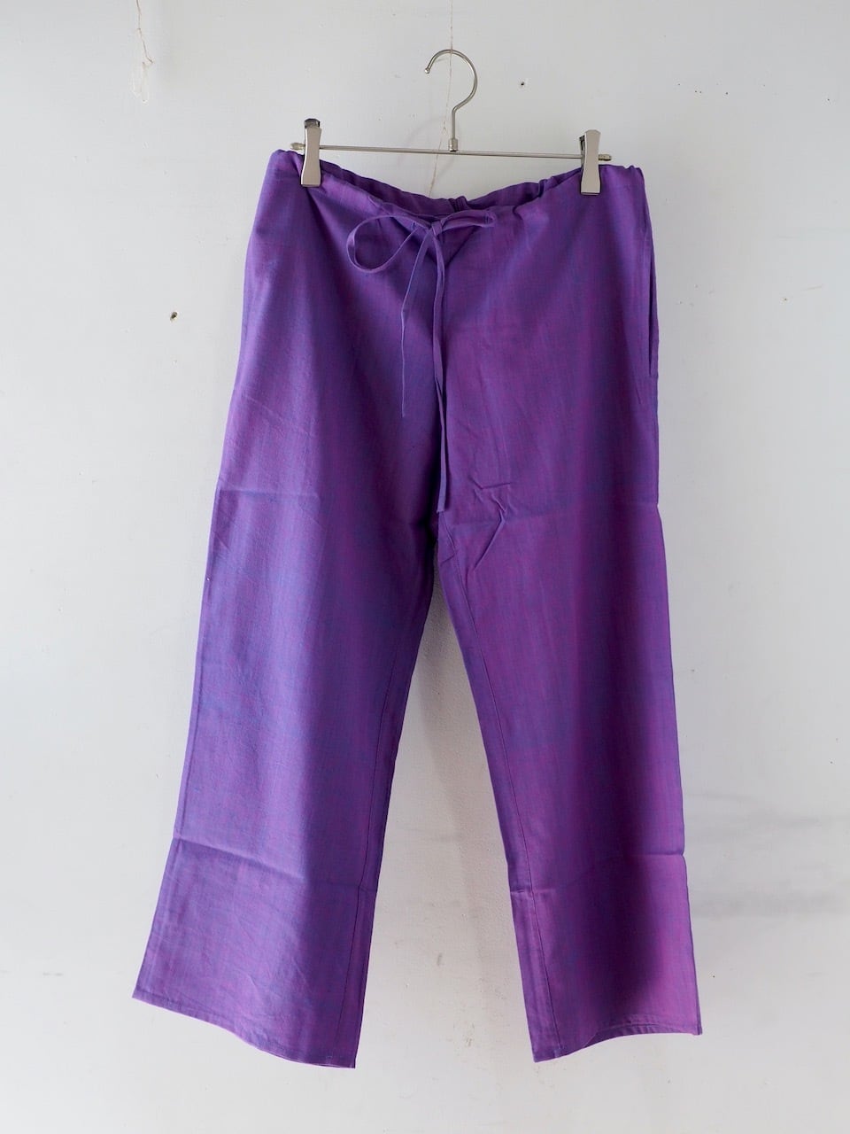 一枚で着ることのできる厚さの布のイージーパンツです。