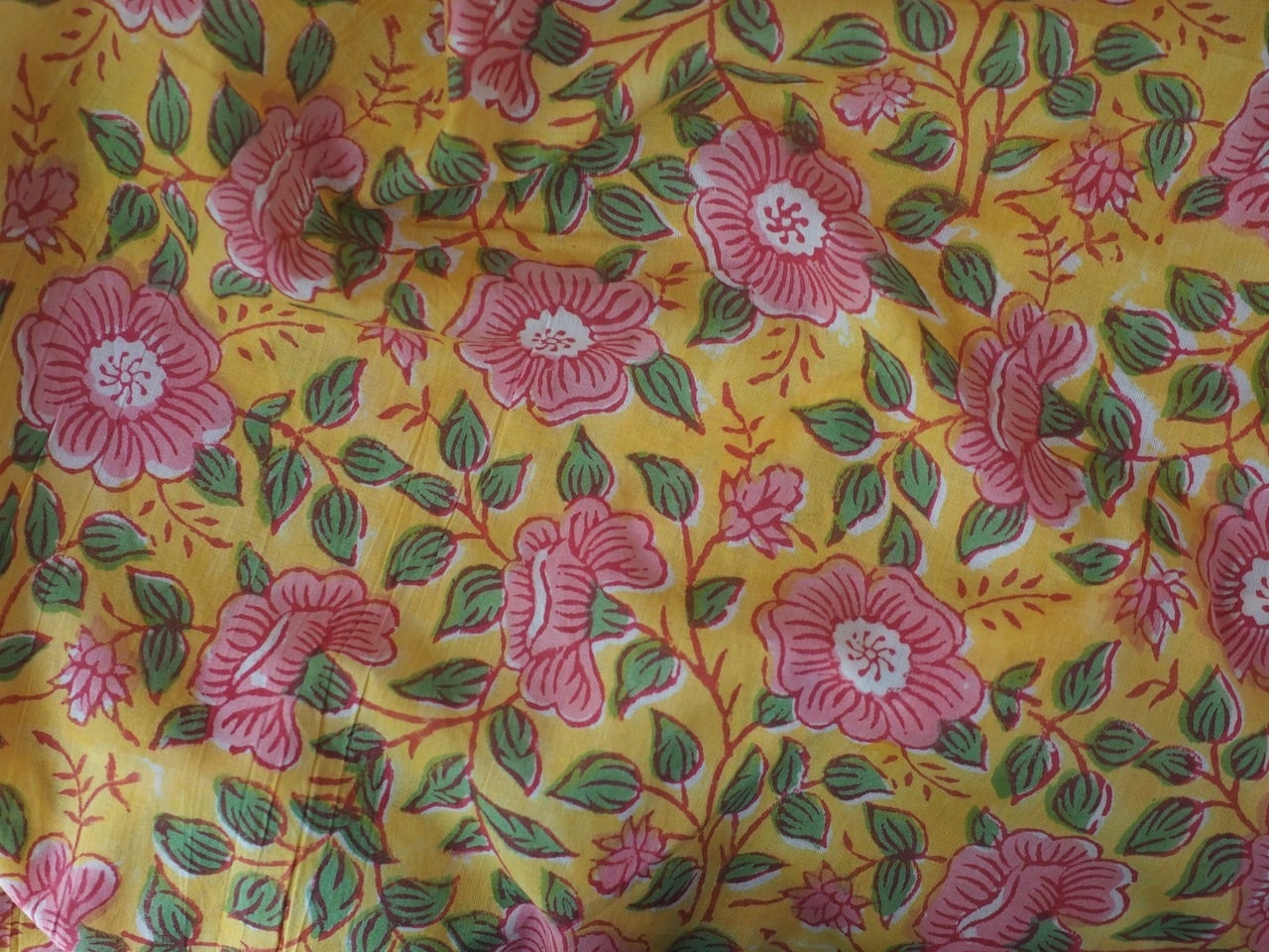 ブロックプリントと呼ばれるインド の伝統的な技法でプリントされた生地。木版で版画のように色を重ねていきます。時には10色以上重ねられることも!それゆえに木版の継ぎ目が見えたり、色むらがあったりしますが、それが一般的なスクリーンプリントにはない、なんとも言えない立体感を生み出しています。