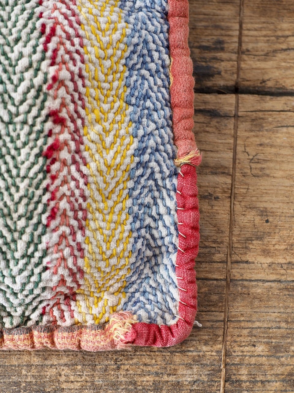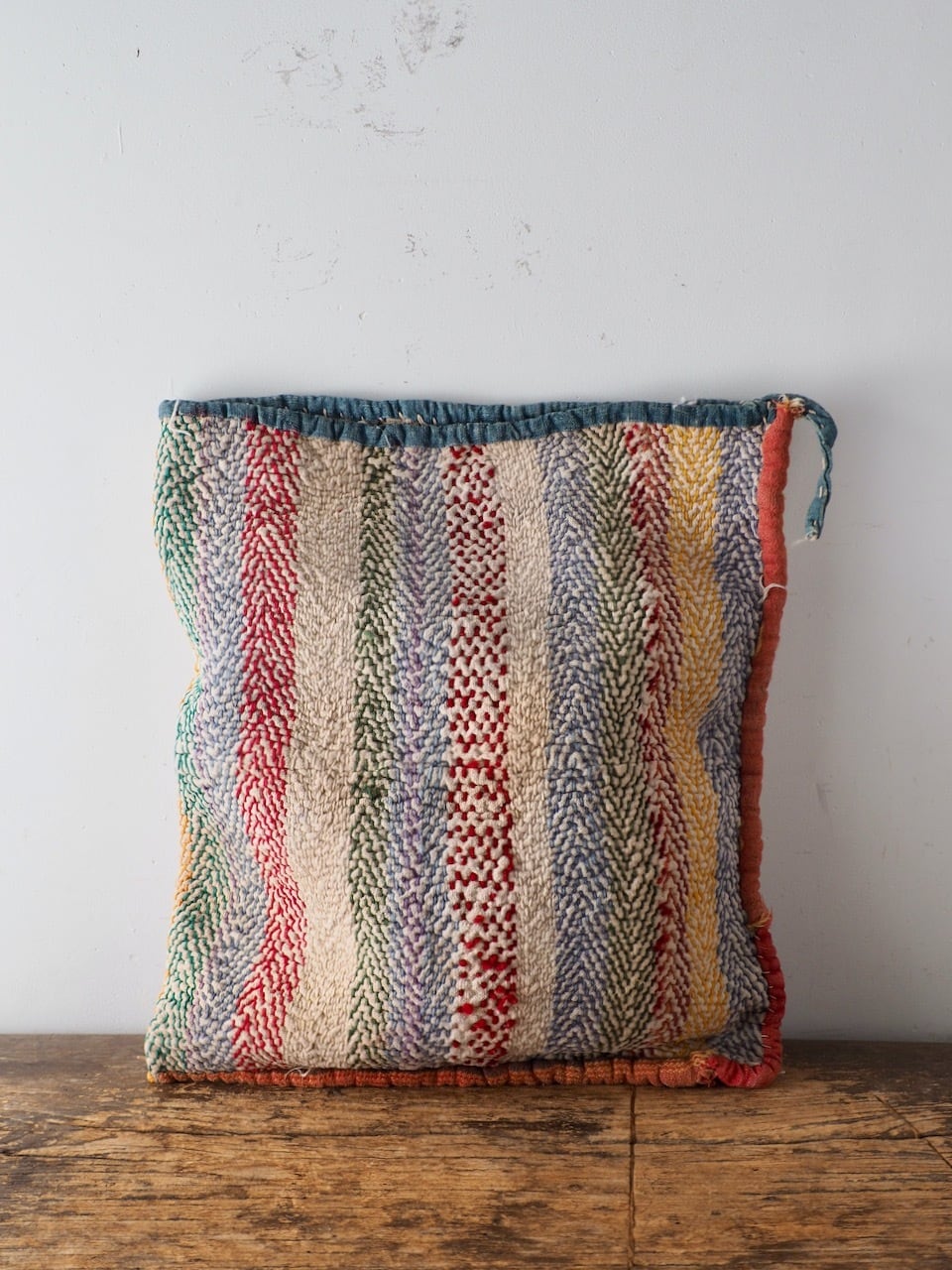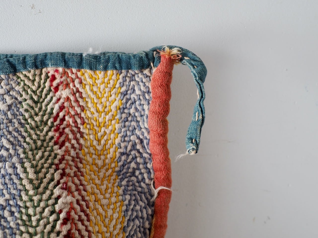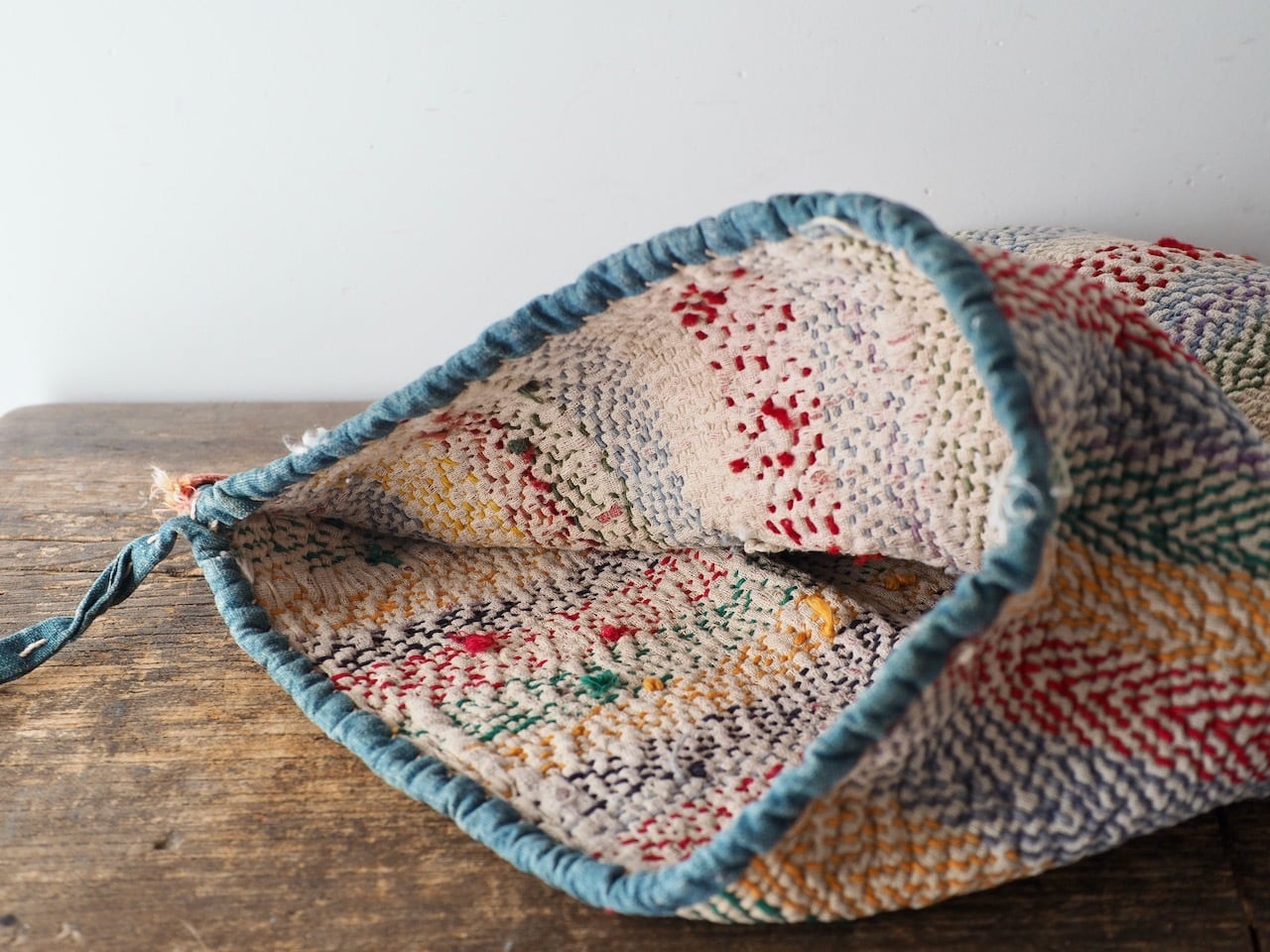 裏の刺繍がかわいい、カッチ地方の程よい厚みの古い布袋です。